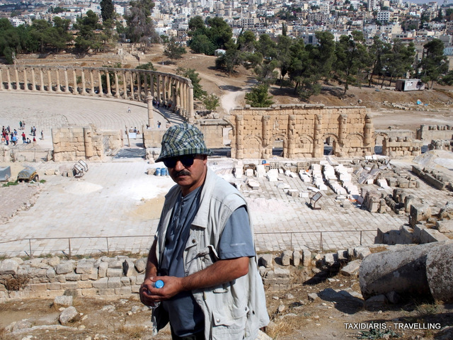 Ο Γρηγόρης Μαλιώτης περιφέρεται ευχάριστα μέσα στο χώρο, θαυμάζοντας την αρχαία ομορφιά.The history of Jerash is an amazing blend of the Greco-Roman and Oriental influences.
